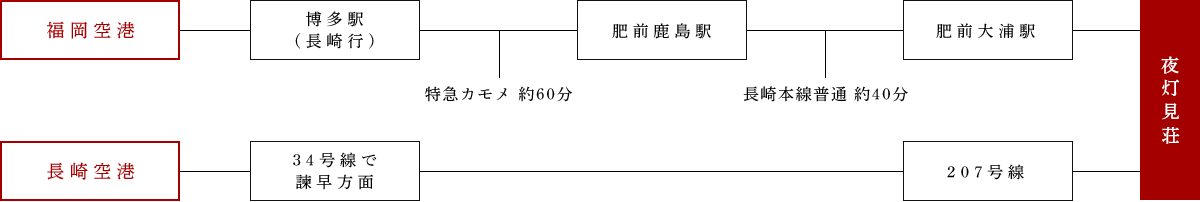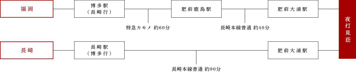 最寄駅は【 肥前大浦駅 】でございます。 事前にお電話頂けますと、お迎えにあがりますのでお電話にてお問合せくださいませ。