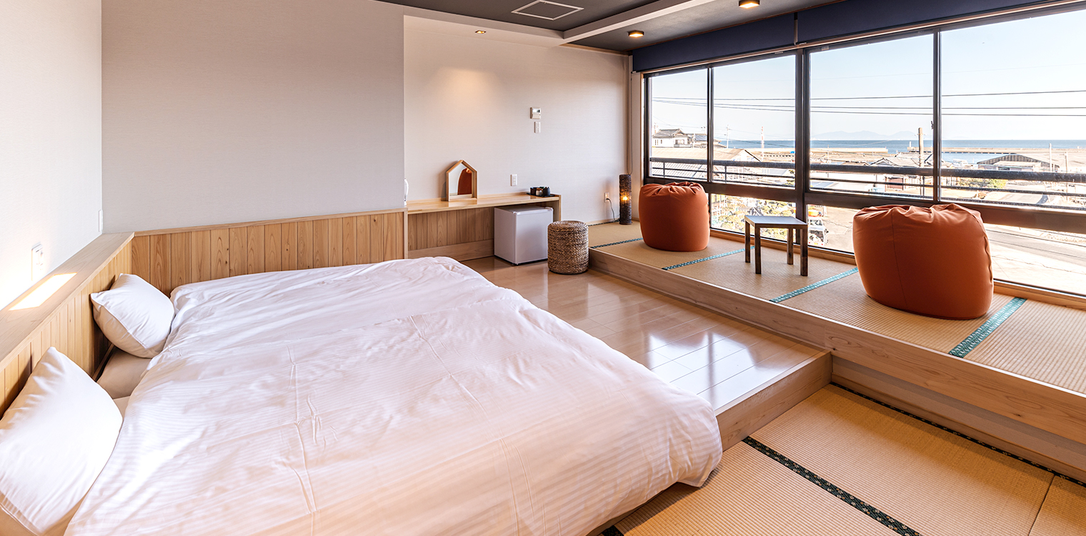 とにかく目の前に広がる有明海を堪能して欲しい為に作ったお部屋。