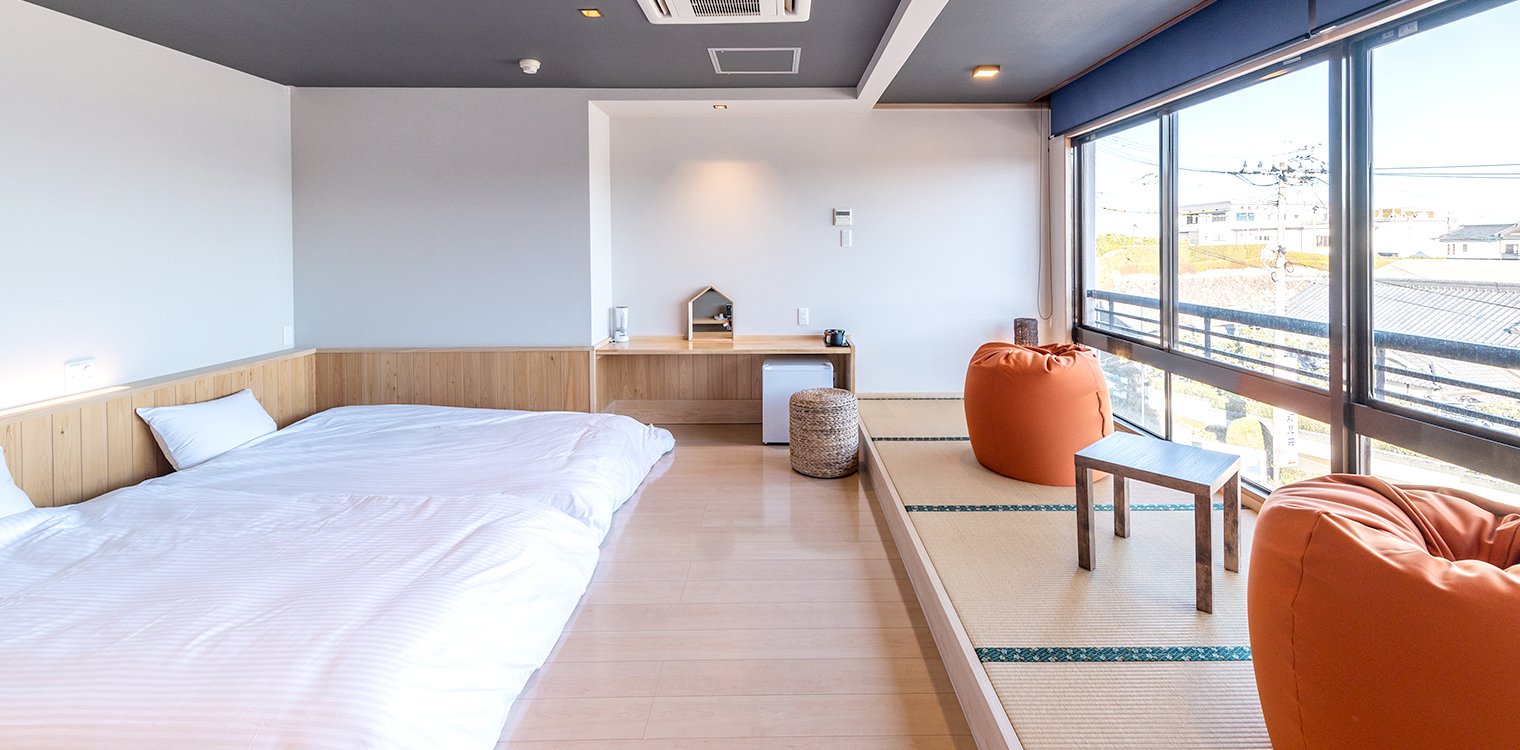 約8畳ほどの和室に分かれたシンプルに広々としたお部屋。